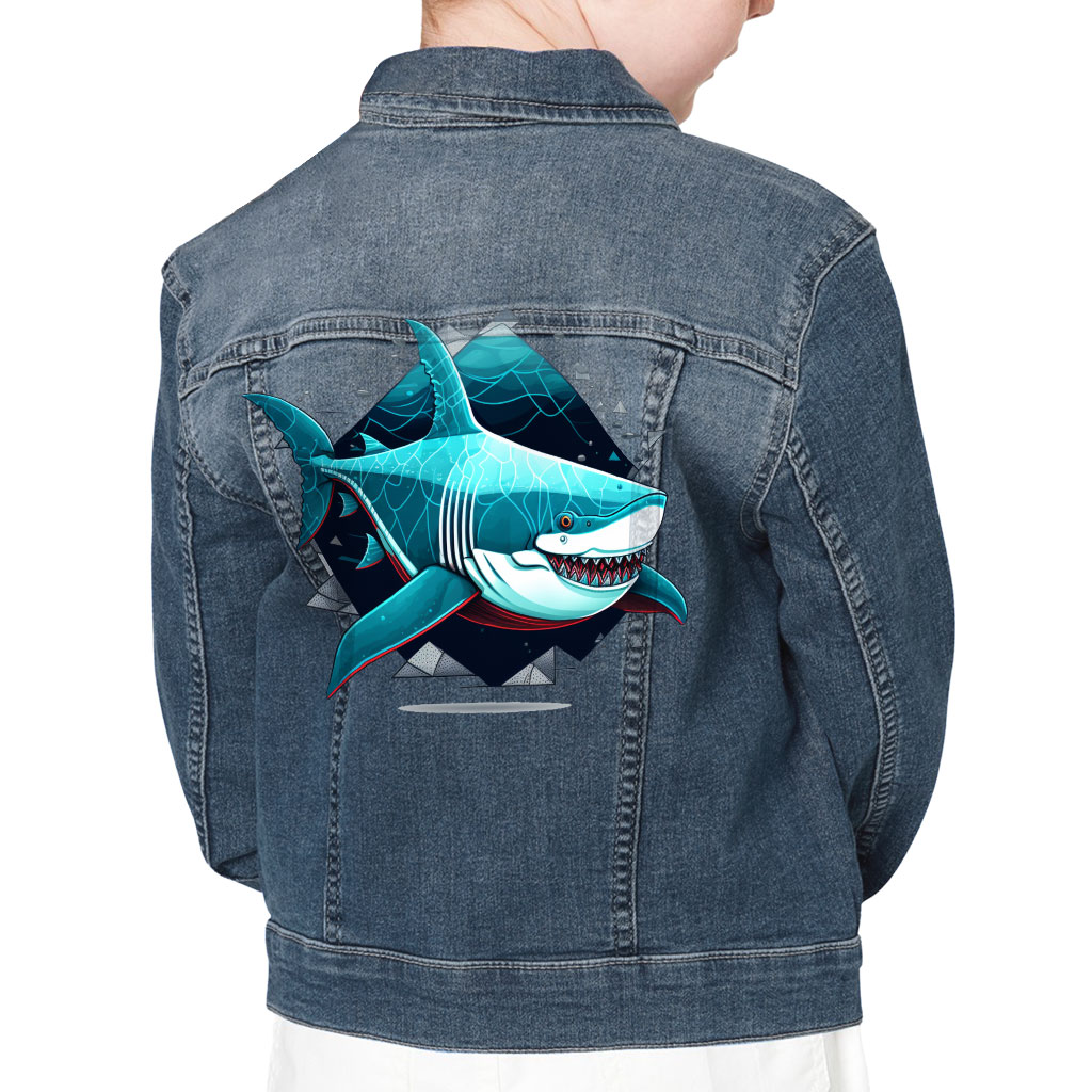 Shark Print Kids’ Denim Jacket – Cool Art Jean Jacket – Best Design Denim Jacket for Kids