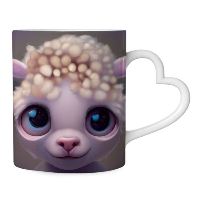 Sheep Head Mug with Heart Handle – Farm Animal Mug – Funny Ceramic Mug