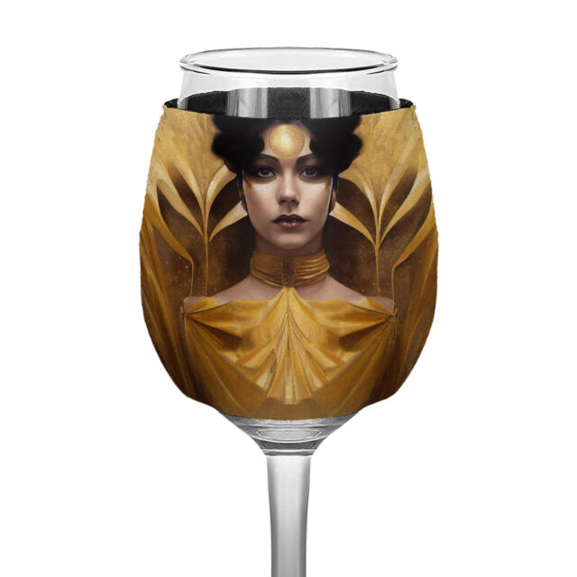 Wine glass sleeve measures 3.5 x 4.5 inches and is suitable for standard-sized wine glasses.