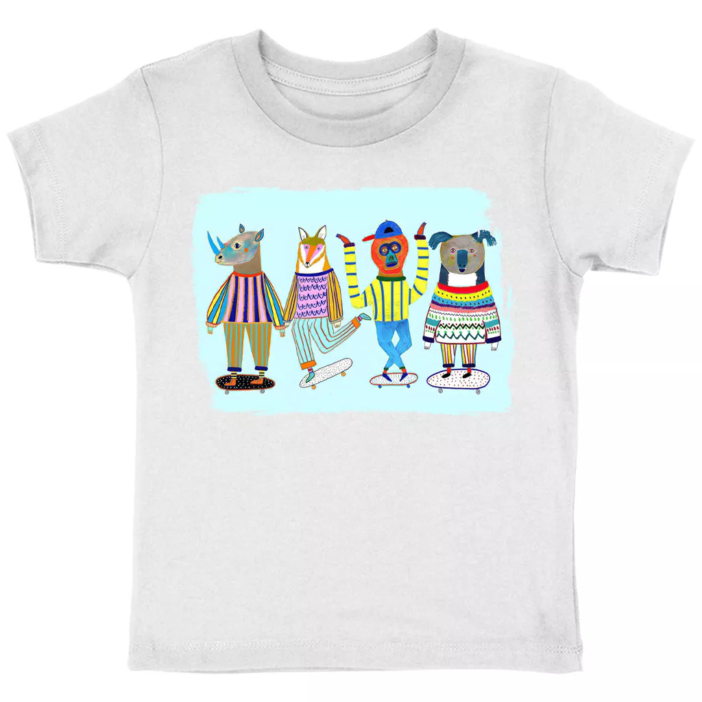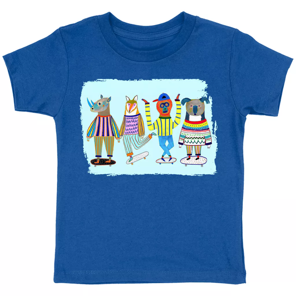 Skating Friends Toddler Cotton T-Shirt – Kids Art Short Sleeve Tee – Bright Colorful T-Shirt for Kids