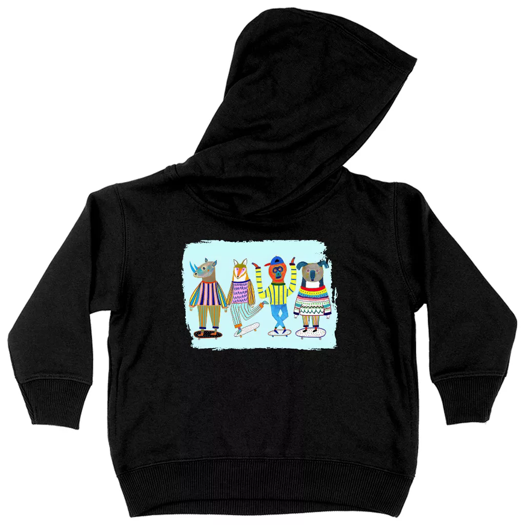 Skating Friends Toddler Hoodie – Bright Colorful Hoodie for Kids – Kids Art Hooded Pullover