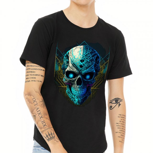Skull Print Curved Hem T-Shirt – Unique T-Shirt – Colorful Curved Hem Tee