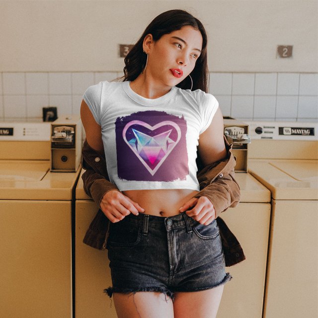 Space Heart Women’s Cropped T-Shirt is no ordinary piece of clothing. Its form-fitting silhouette and soft fit and feel provide a retail fit for clothing that’s true to size.