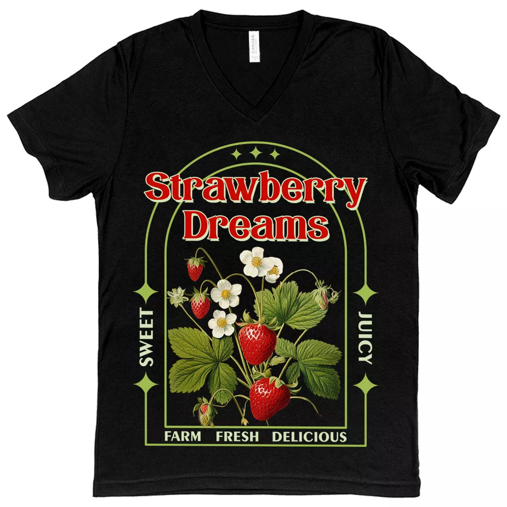 Strawberry Dreams V-Neck T-Shirt – Trendy Basic T-Shirt – Vintage Inspired Tee