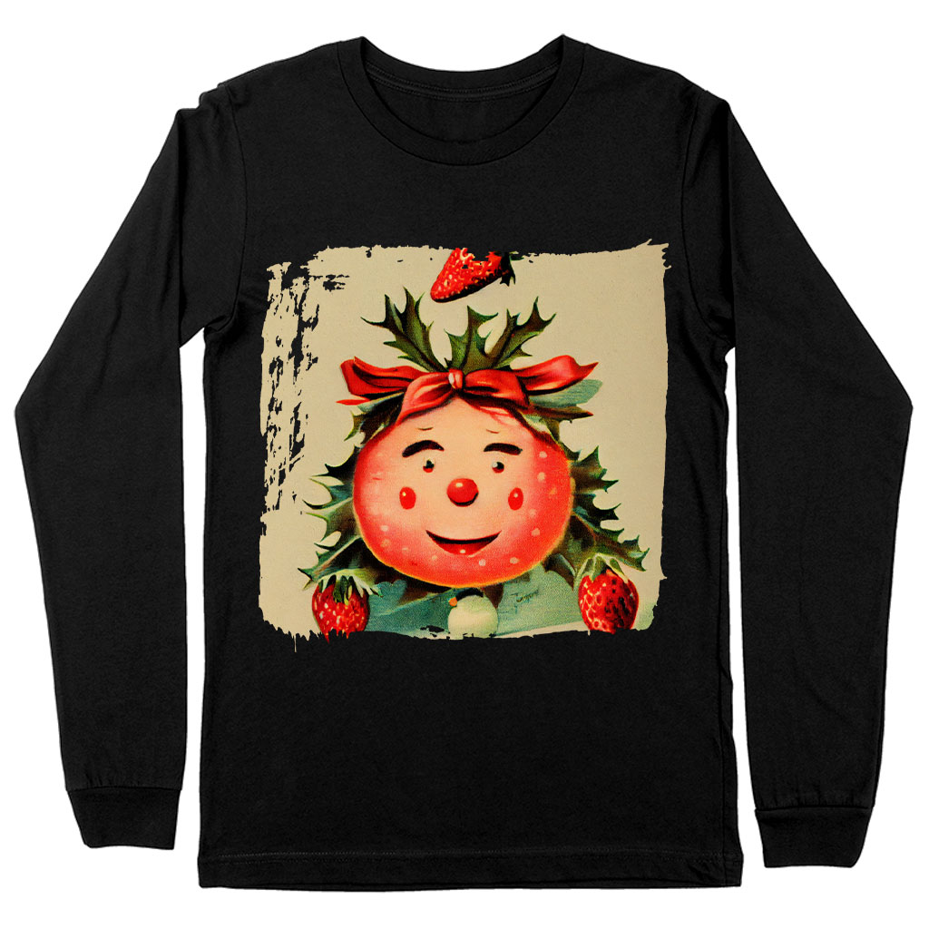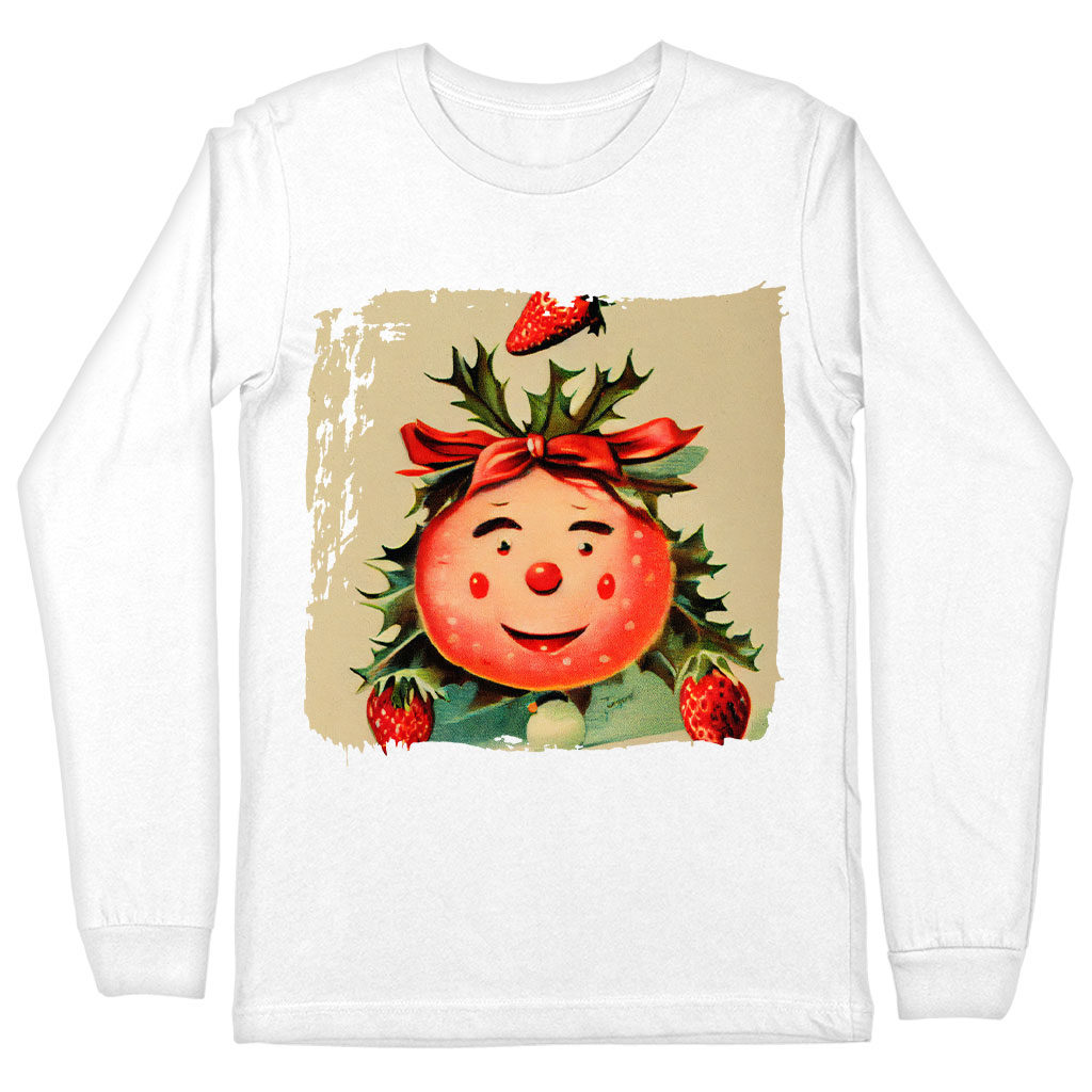 Strawberry Print Long Sleeve T-Shirt – Cute Art T-Shirt – Printed Long Sleeve Tee Shirt