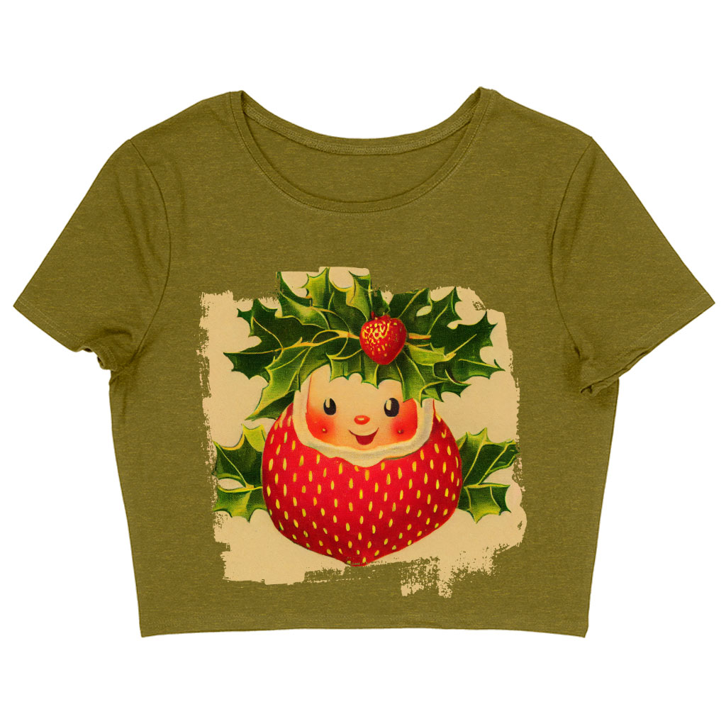 Strawberry Women's Cropped T-Shirt - Cute Kawaii Crop Top - Illustration Crop Tee Shirt Clothing T-Shirts Color : Black|Heather Olive|White