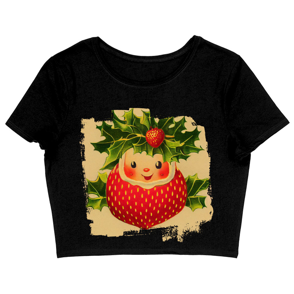 Strawberry Women’s Cropped T-Shirt – Cute Kawaii Crop Top – Illustration Crop Tee Shirt