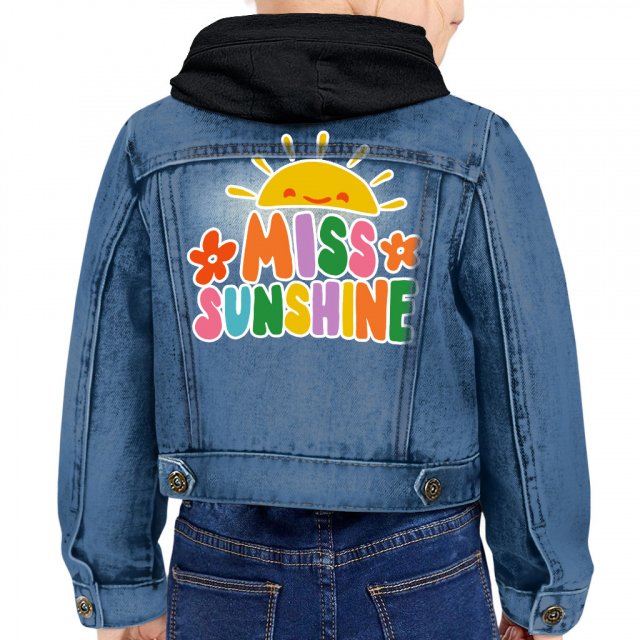 Sunshine Toddler Hooded Denim Jacket – Cute Jean Jacket – Printed Denim Jacket for Kids