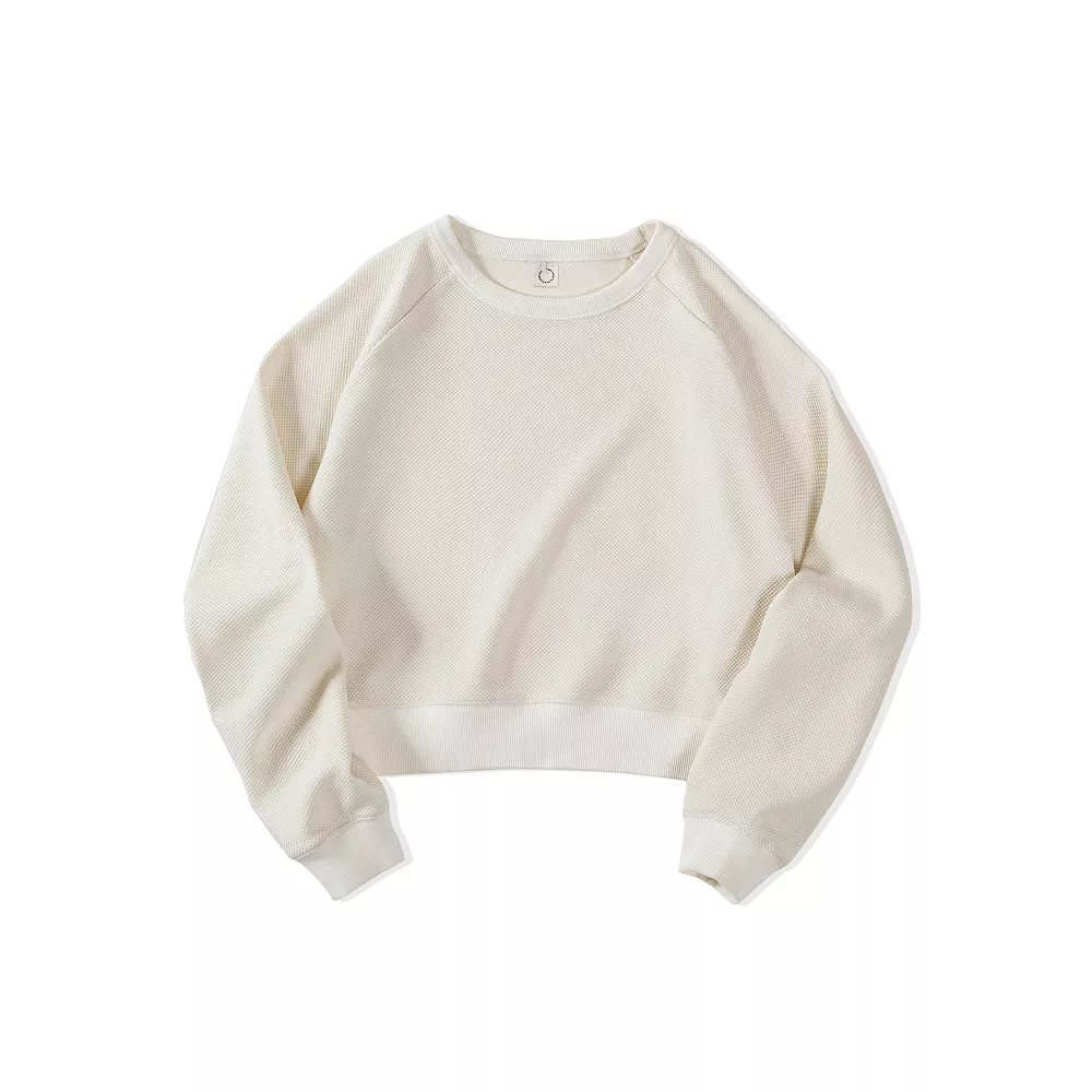 Made from a high-quality blend of polyester and spandex, this sweatshirt is lightweight, breathable, and slightly stretchy for a flattering fit. The soft, textured fabric adds dimension and style, while the round collar and full-length sleeves provide warmth for those breezy spring and fall days. Designed to move with you, it offers a comfortable yet stylish silhouette that complements any outfit.