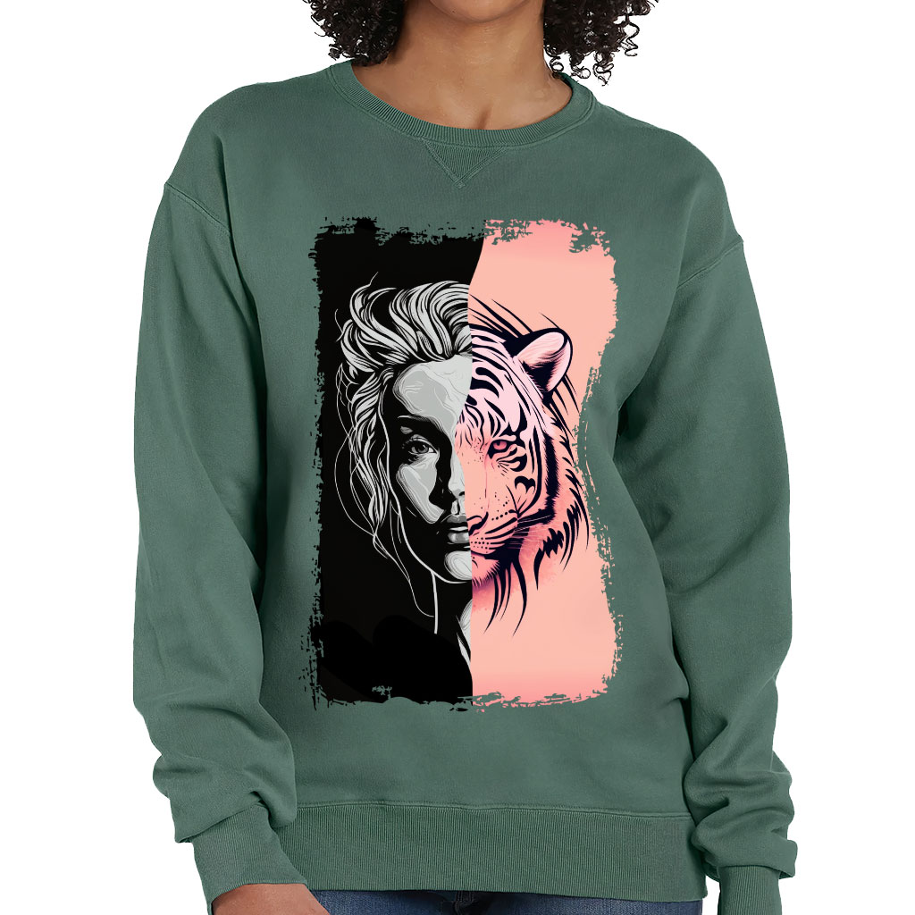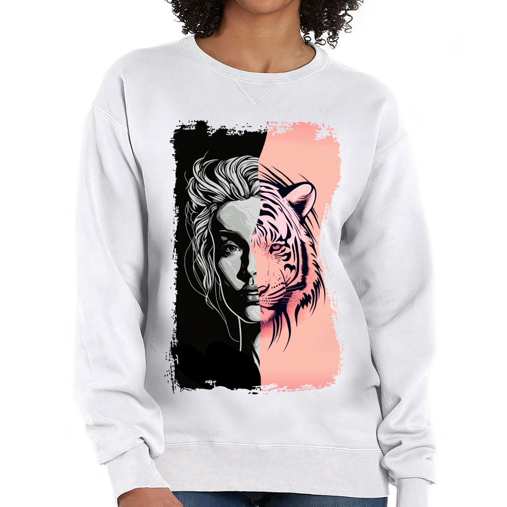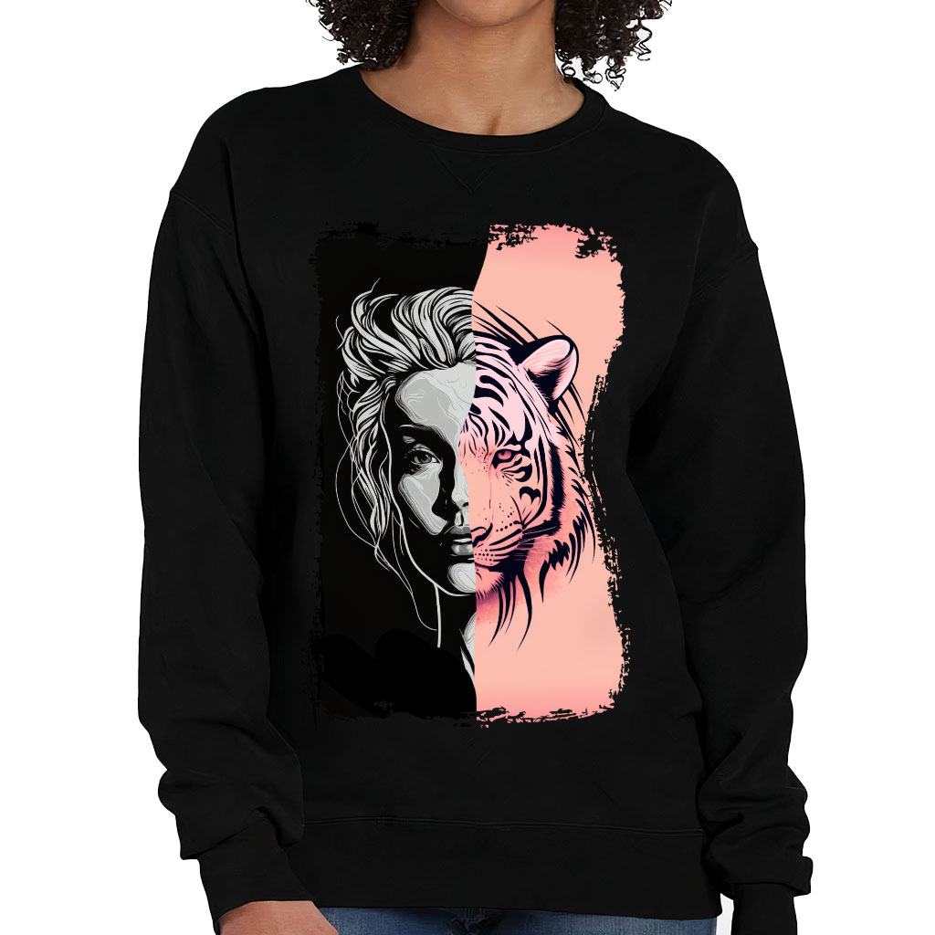 Tiger Graphic Crewneck Sweatshirt – Lady Design Women’s Sweatshirt – Creative Sweatshirt