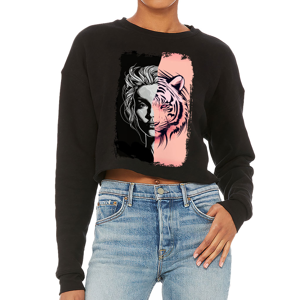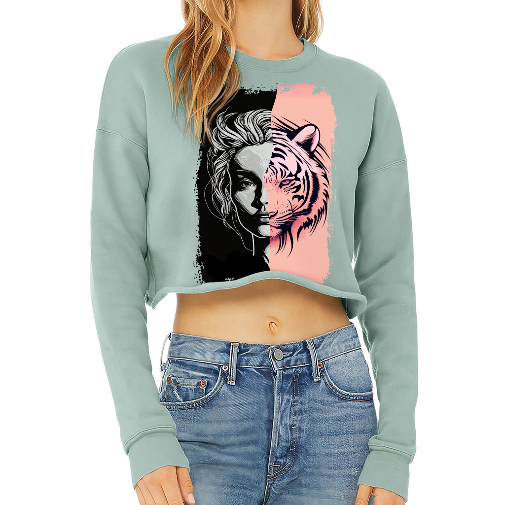 Tiger Graphic Cropped Sweatshirt – Lady Design Women’s Sweatshirt – Creative Crop Crew Sweatshirt