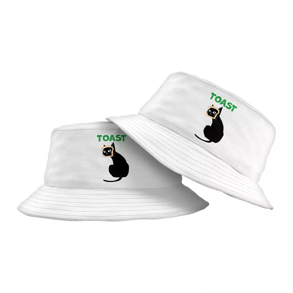 Toast Cat Bucket Hat – Funny Kitten Trendy Hat – Black Cat Sun Hats