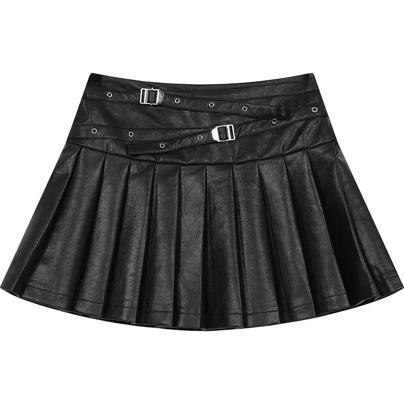 Trendy Faux Leather Pleated Mini Skirt – High Waist Y2K Style for Women