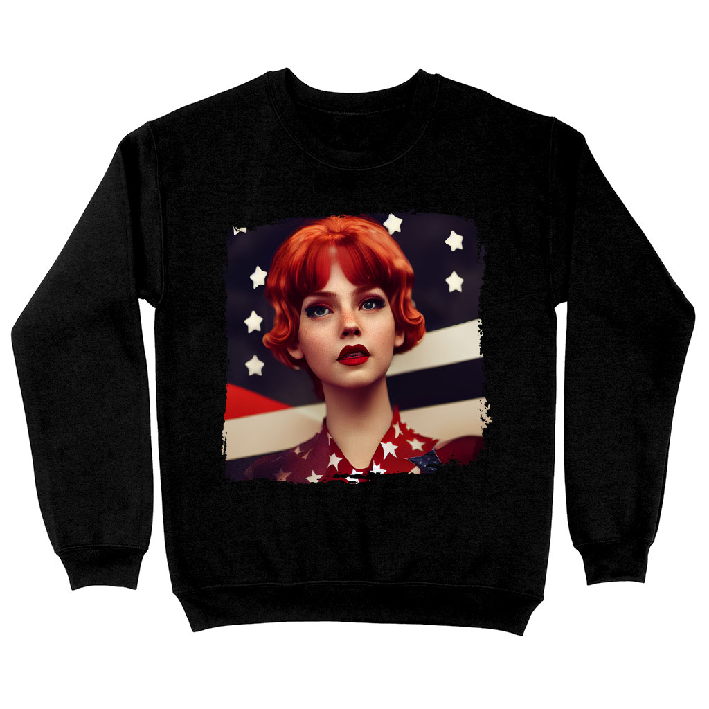 USA Flag Print Sweatshirt – Girl Art Crewneck Sweatshirt – Patriotic Sweatshirt