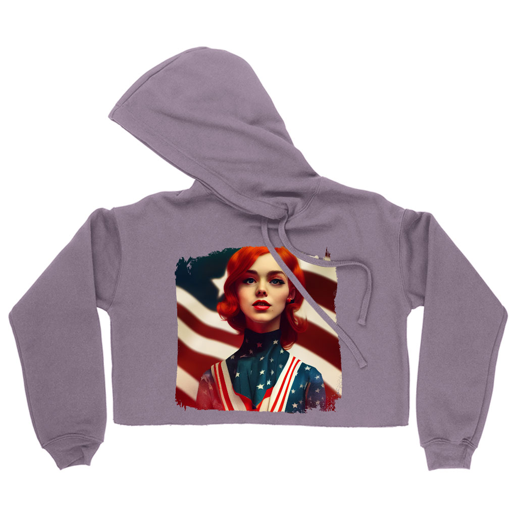 USA Flag Women’s Cropped Fleece Hoodie – American Flag Cropped Hoodie for Women – Print Hooded Sweatshirt