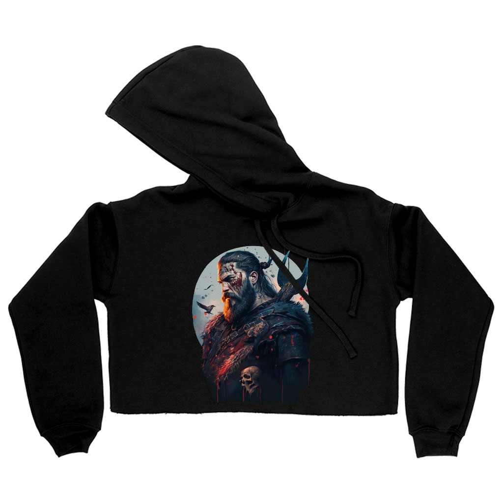 Viking Design Women’s Cropped Hoodie – Portrait Cropped Hoodie – Cool Hooded Sweatshirt