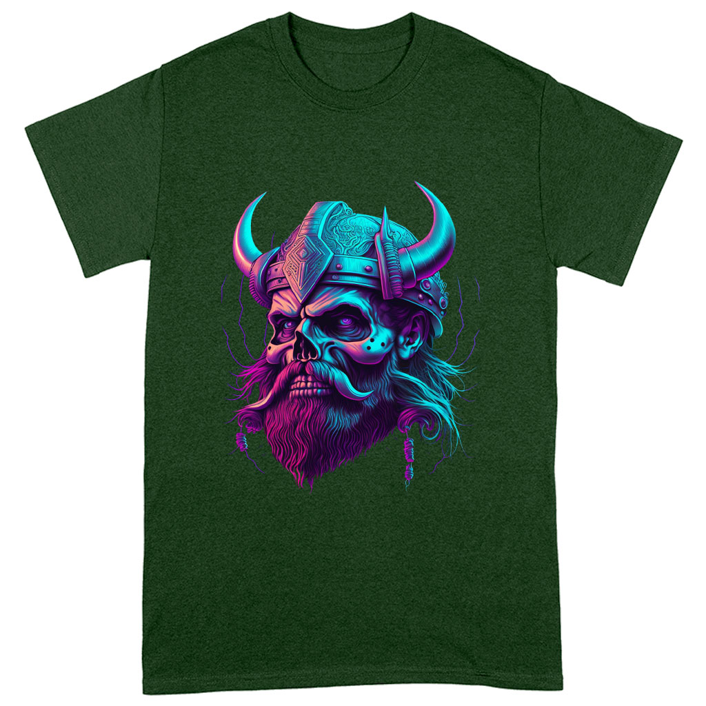 Viking Print Heavy Cotton T-Shirt - Skull Design Tee Shirt - Cool Design T-Shirt Clothing T-Shirts Color : Black|Forest Green|White