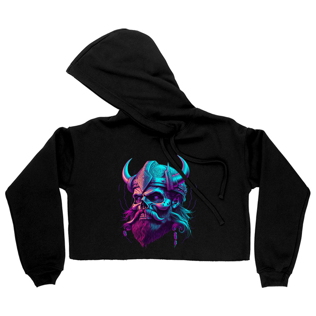 Viking Print Women’s Cropped Hoodie – Skull Design Cropped Hoodie – Cool Design Hooded Sweatshirt