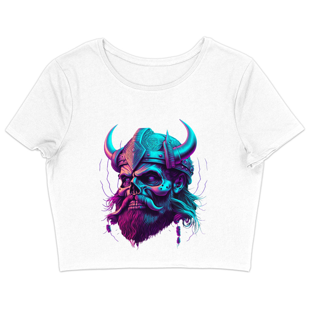 Viking Print Women’s Cropped T-Shirt – Skull Design Crop Top – Cool Design Crop Tee Shirt