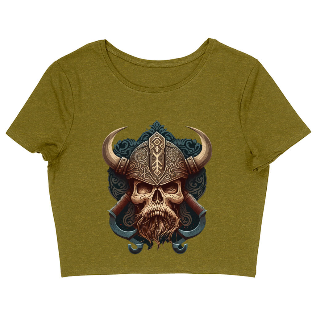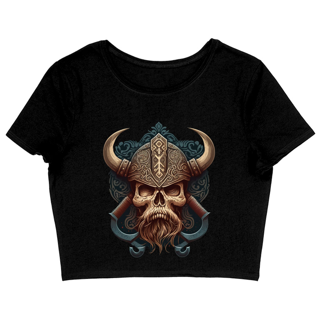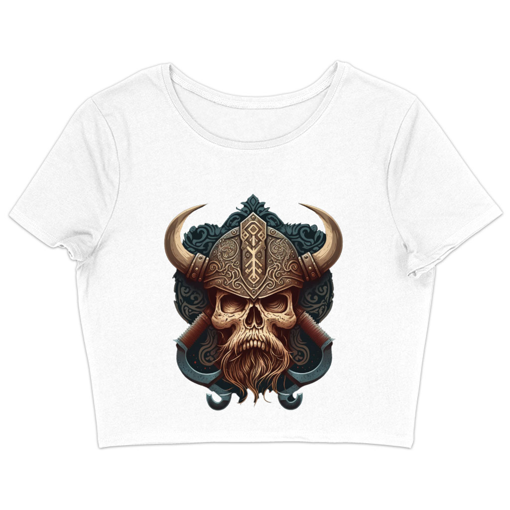 Viking Style Women’s Cropped T-Shirt – Skull Crop Top – Themed Crop Tee Shirt