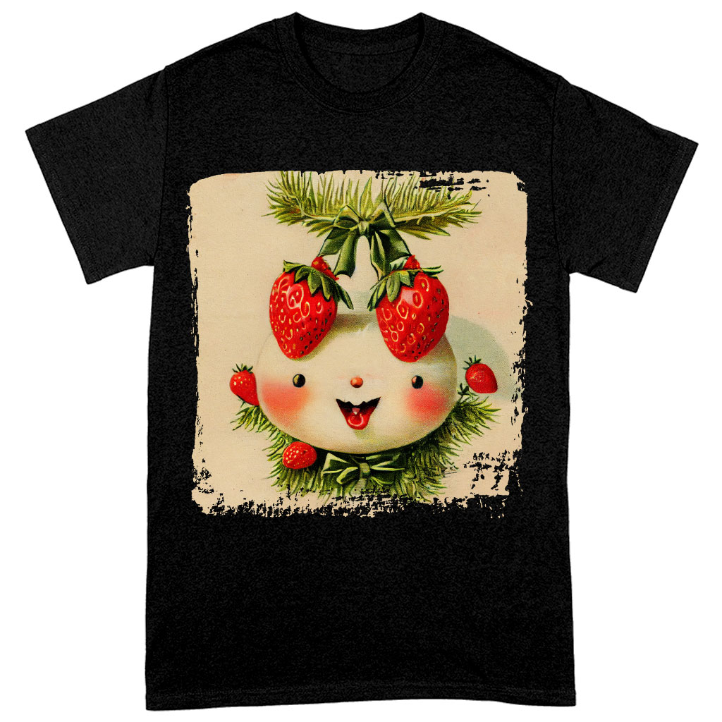 Vintage Strawberry Heavy Cotton T-Shirt - Cartoon Tee Shirt - Graphic T-Shirt Clothing T-Shirts Color : Black|Forest Green|White
