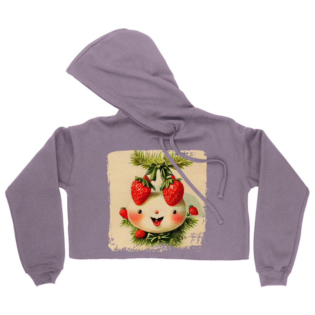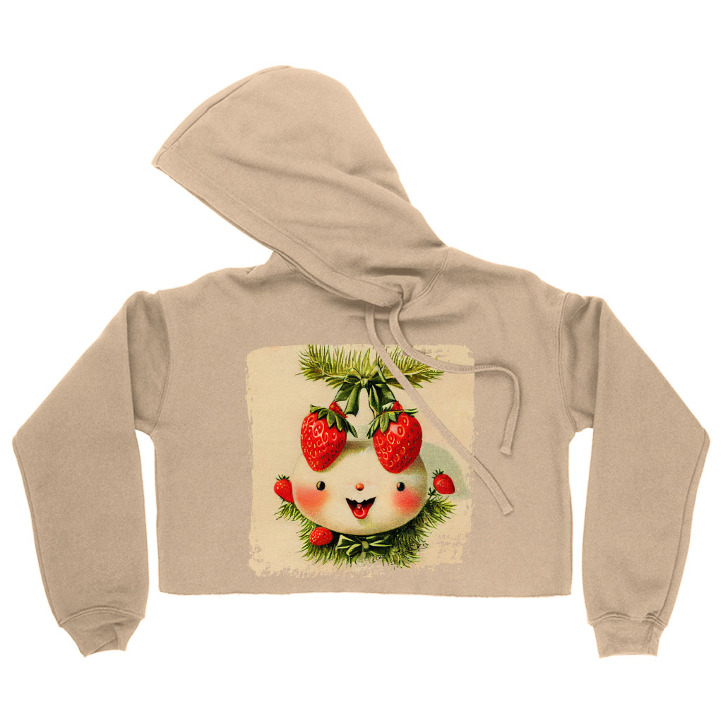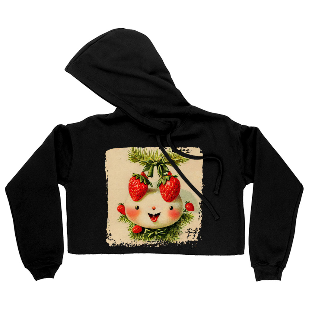 Vintage Strawberry Women’s Cropped Hoodie – Cartoon Cropped Hoodie – Graphic Hooded Sweatshirt