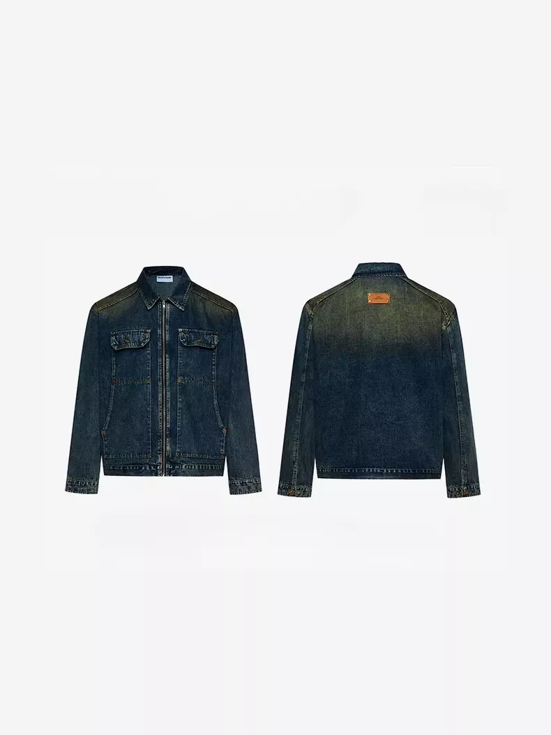 Washed Distressed Faded Denim Zip-Up Jacket for Men