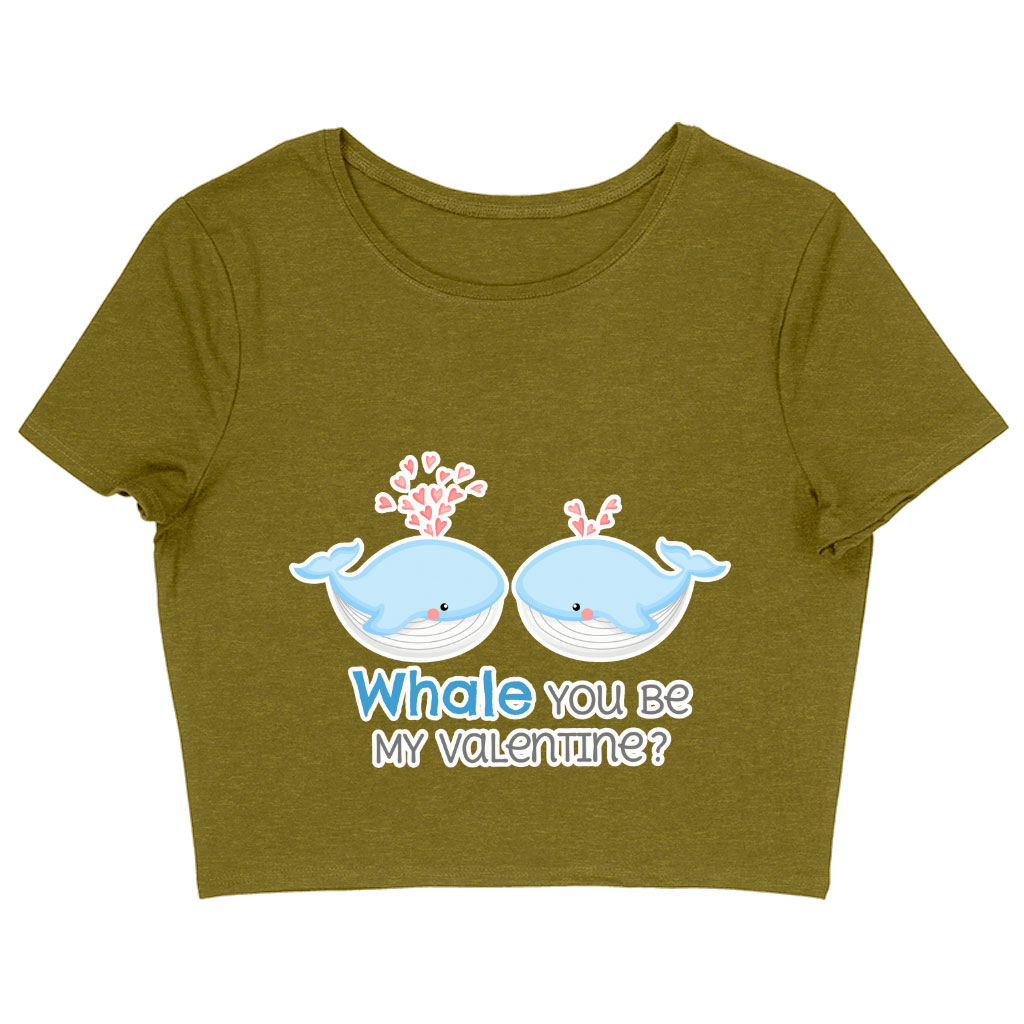 Whale You Be Mine Women's Cropped T-Shirt - Cute Kawaii Crop Top - Cartoon Crop Tee Shirt Clothing T-Shirts Color : Black|Heather Olive|White