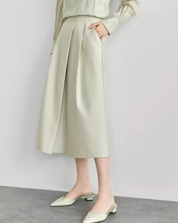 • Folds and Slit Detailing: Elegant folds and a stylish slit add movement and flair, enhancing the skirt’s casual yet polished vibe.