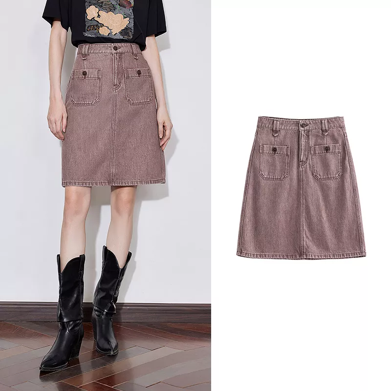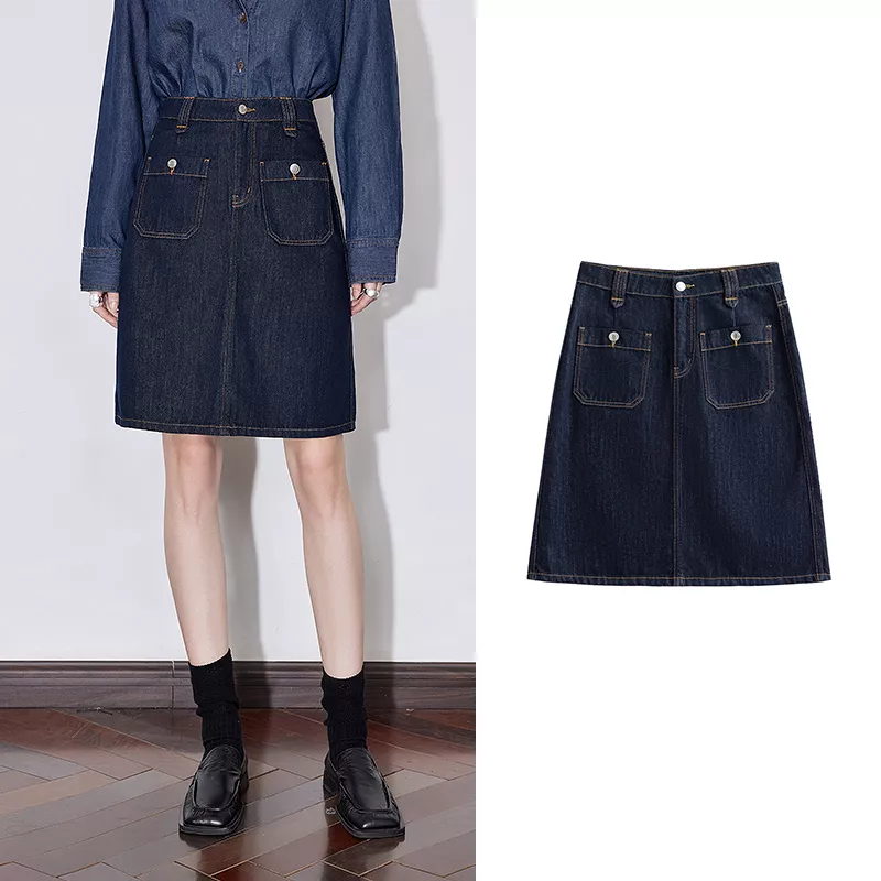 This skirt is more than just a basic wardrobe piece—it’s a versatile, stylish staple that can easily be dressed up or down. The non-stretch denim fabric ensures a flattering, structured fit that holds its shape throughout the day. Whether you’re pairing it with a tucked-in blouse for work or a casual tee for a weekend outing, this skirt adds a touch of sophistication to any outfit.