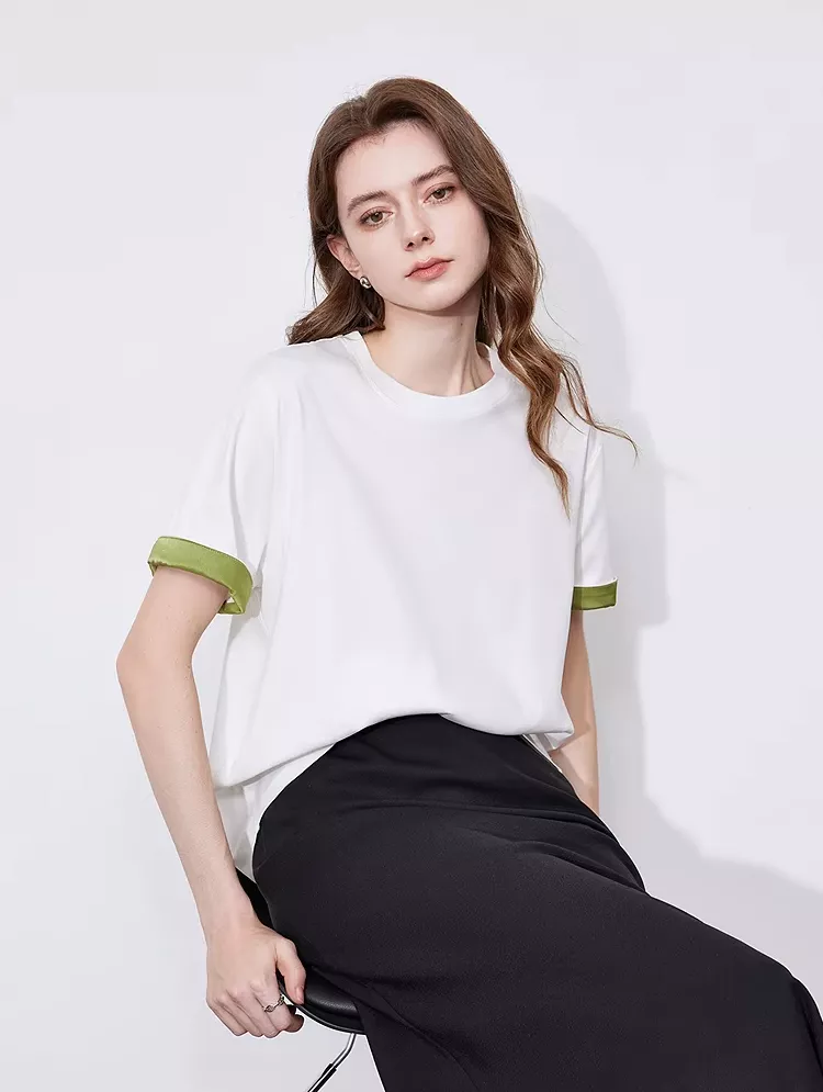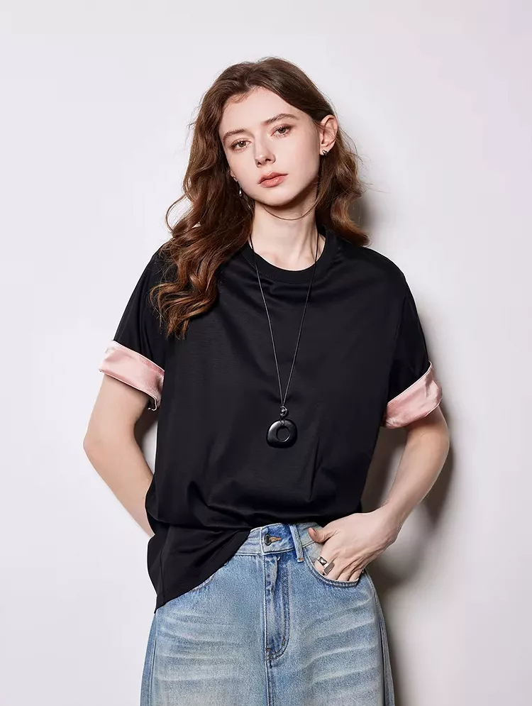 - Luxurious Silk Satin Material: Crafted from silk satin, this T-shirt offers a smooth, soft feel that’s gentle on the skin and radiates understated luxury.
