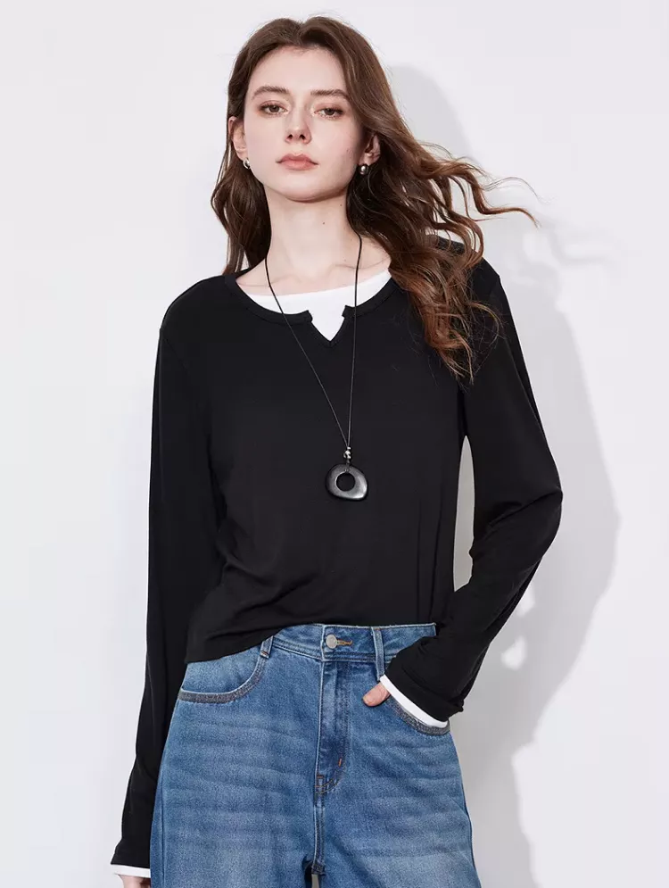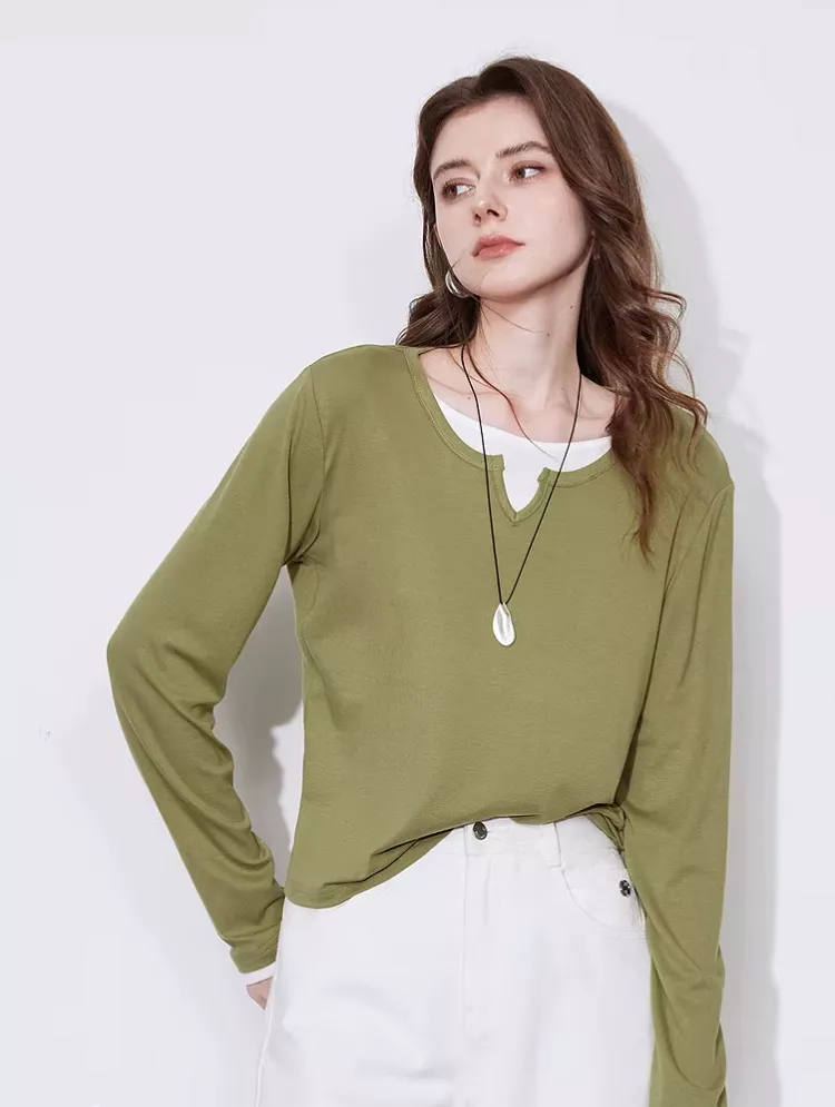 This Color Blocking Splicing Fake Two Piece Long Sleeve T-shirt is perfect for a variety of occasions. Whether you’re heading to work, running errands, or enjoying a weekend outing, it’s the perfect balance of style and comfort. The modern design makes it suitable for both casual and semi-casual settings, and it pairs effortlessly with jeans, skirts, or trousers. Its breathable fabric and versatile design also make it an ideal choice for spring and summer days, offering both warmth and style.