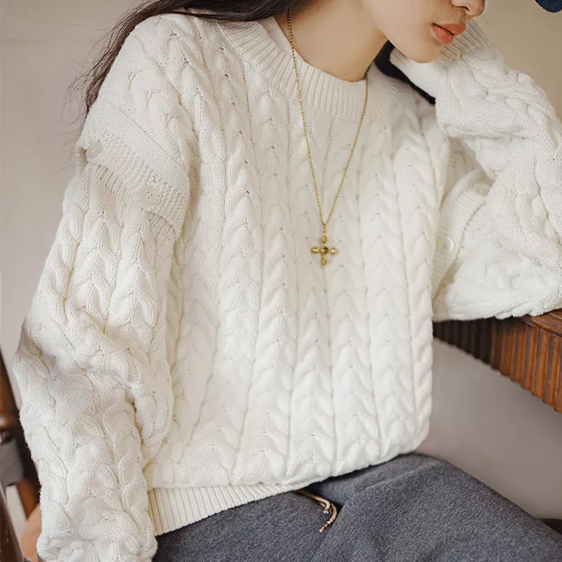 Unlike ordinary knitwear, this 2-in-1 detachable sleeve sweater offers both style and practicality. The buttoned sleeve detail provides a unique touch, allowing you to transition seamlessly between a cozy pullover and a trendy vest. With its neutral white shade and minimalist design, this piece pairs effortlessly with jeans, skirts, or tailored trousers, making it a must-have for any modern wardrobe.