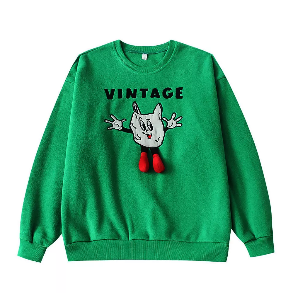 Stay warm and fashionable with this soft fleece pullover sweatshirt, designed for comfort and style. Featuring a trendy loose fit, drop-shoulder sleeves, and adorable cartoon embroidery, this sweatshirt is perfect for school, casual outings, or lounging at home. The vibrant green color adds a fresh touch to your wardrobe, making it an eye-catching yet cozy essential for fall and spring.