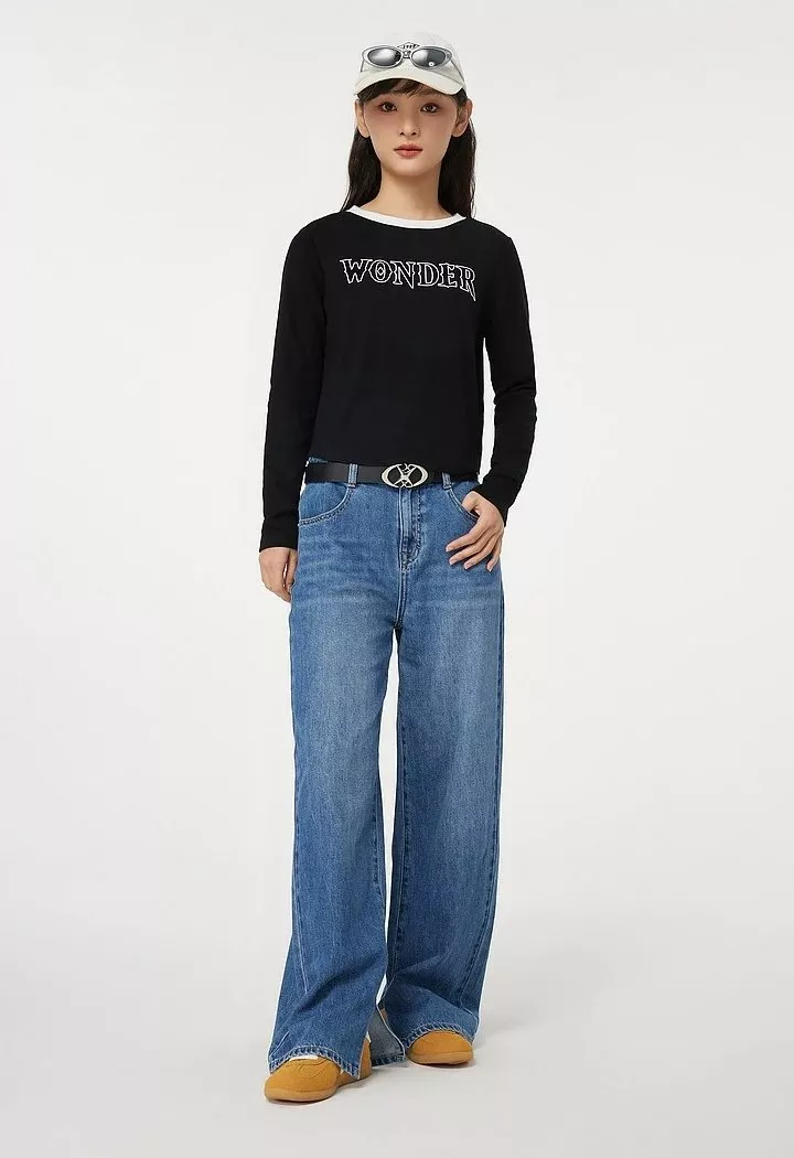 These full-length jeans feature a high-waist fit that flatters your silhouette and provides all-day comfort. The straight-leg design offers a timeless appeal, while the enzyme wash finish adds a subtle vintage charm. Without any added stretch, the premium cotton fabric ensures breathability and a soft feel against the skin, making them perfect for spring and summer wear.
