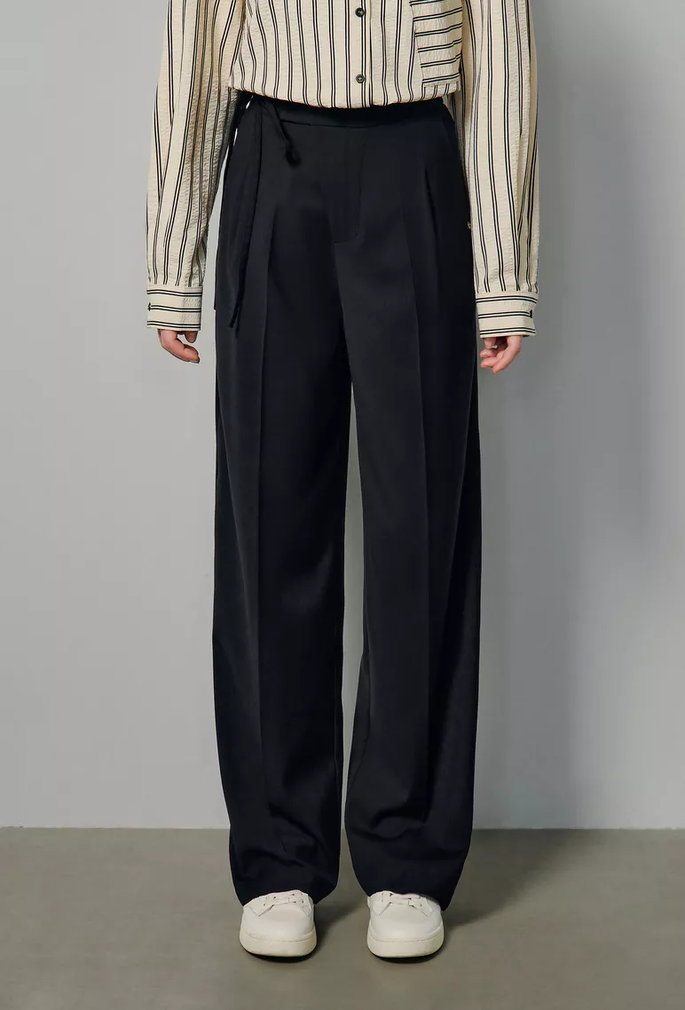 The high-waist, pleated wide-leg design is an iconic style that works for a variety of settings. Whether you’re at work, running errands, or enjoying a weekend brunch, these trousers provide an easy way to elevate your outfit. Their solid color ensures that you can pair them with virtually anything in your closet, making them a versatile piece for any occasion.