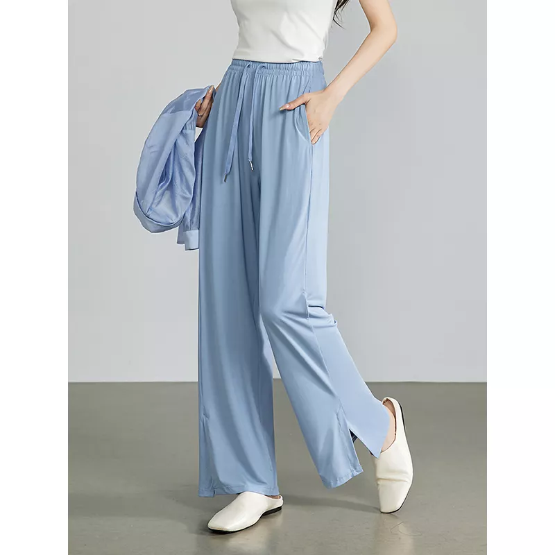 Made from a high-quality polyester blend, these wide-leg pants are ideal for the summer season. The fabric is lightweight, breathable, and provides just the right amount of stretch to keep you comfortable throughout the day. The loose fit ensures freedom of movement, while the mid-rise waist offers a flattering silhouette that pairs perfectly with any top.