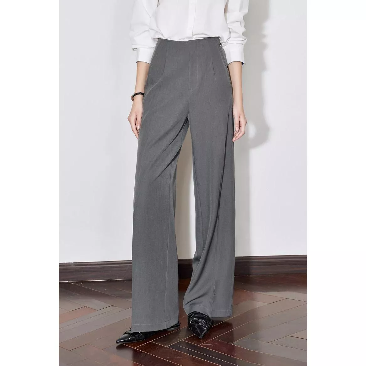 Step into effortless style and all-day comfort with these high-waist wide-leg trousers, designed for the modern woman who values sophistication and ease. Featuring a sleek straight-leg cut, these pants offer a relaxed yet polished look that complements any outfit. The versatile gray shade makes them a must-have staple for your fall and winter wardrobe, perfect for work, casual outings, or evening plans.