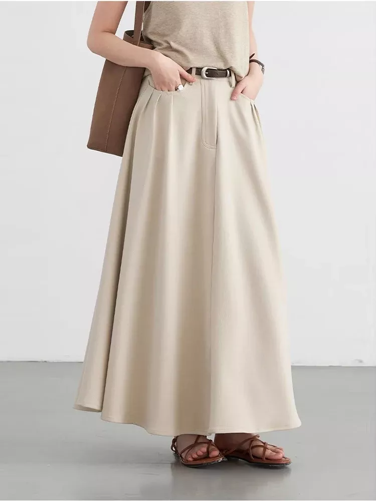 Whether you’re styling it with a blouse for the office or a cropped top for a weekend brunch, this skirt seamlessly fits into any outfit. Its non-stretch fabric ensures it holds its shape, giving you a structured yet flowy look that feels effortlessly stylish.