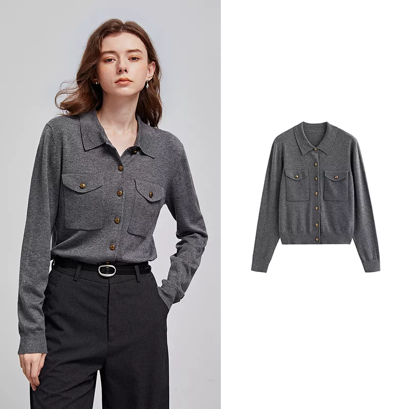 • Elegant Design: A vintage-inspired turn-down collar with delicate button detailing adds a refined touch.