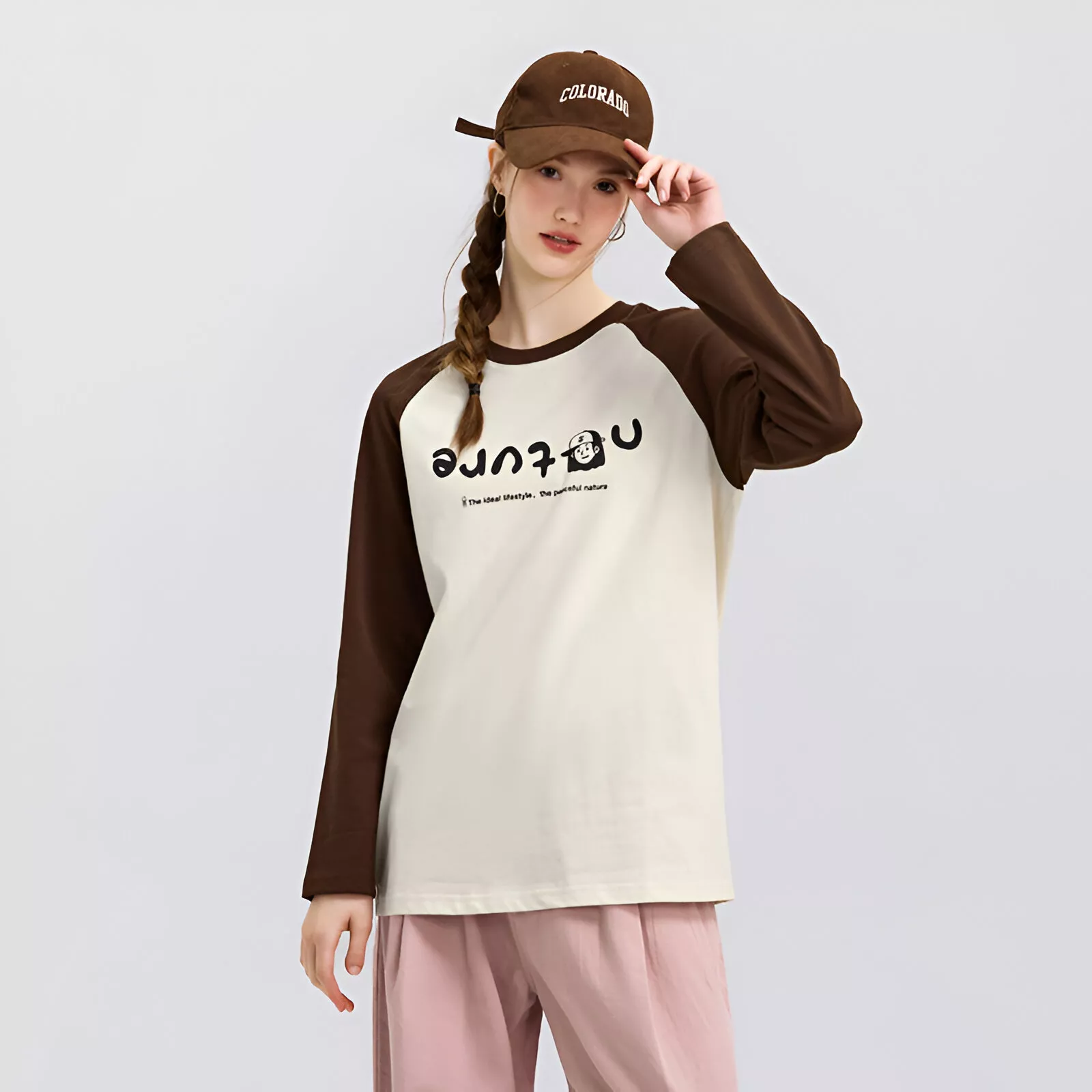 Women’s Long Sleeve Raglan T-Shirt – Loose Fit, Color-Blocked, Casual Spring Tee