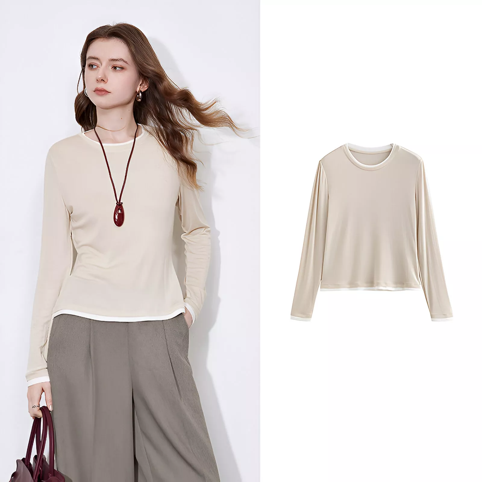 The faux two-piece design creates the illusion of layers while offering the convenience of a single, easy-to-wear piece. Its slim fit and full sleeves provide a sleek, flattering look, perfect for pairing with both jeans and skirts. Plus, the O-neck collar adds a classic touch that never goes out of style.