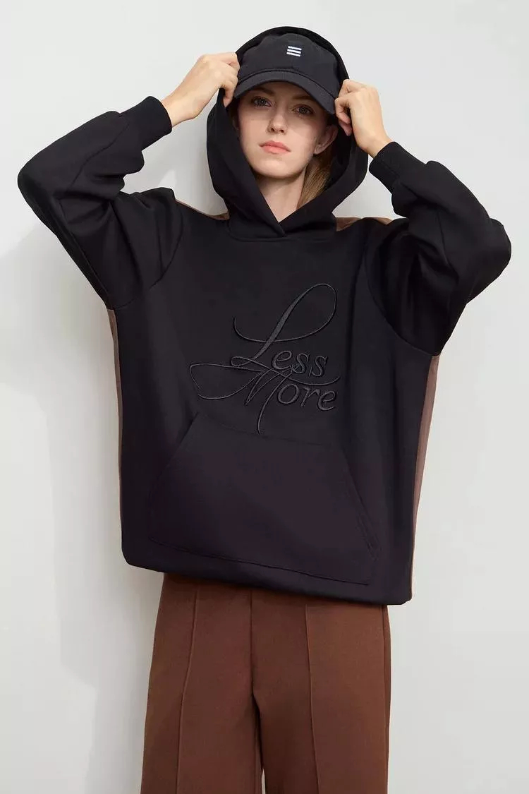 Women’s Long-sleeved Color Matching Embroidery Pocket Fleece Hooded Sweater