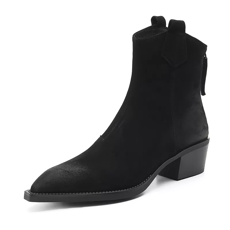 These genuine leather ankle boots are perfect for the spring season, offering versatility and elegance in one sleek package. The pointed toe and chunky heel create a flattering silhouette that pairs perfectly with everything from skirts and dresses to jeans and leggings. Whether you’re at work, out on the town, or meeting friends for coffee, these boots are the ideal footwear to complete your outfit. The concise zipper design makes these boots easy to wear, while the high-quality materials ensure both comfort and longevity. The sheepskin insole provides cushioning for all-day comfort, and the rubber sole ensures you stay steady on your feet no matter where you go. Plus, with a 4.5 cm heel, they add just the right amount of height without sacrificing comfort. Embrace the spring season with these Western-inspired ankle boots—a stylish and practical choice for every woman looking to step out in style. Add them to your wardrobe today and experience the perfect combination of fashion and function!