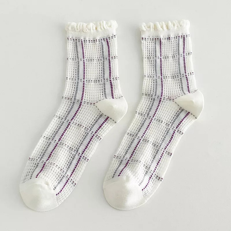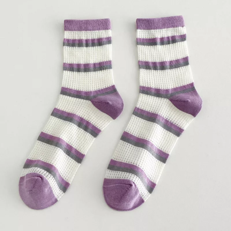 Women’s Spring Breathable Mesh Bubble Mouth Striped Socks