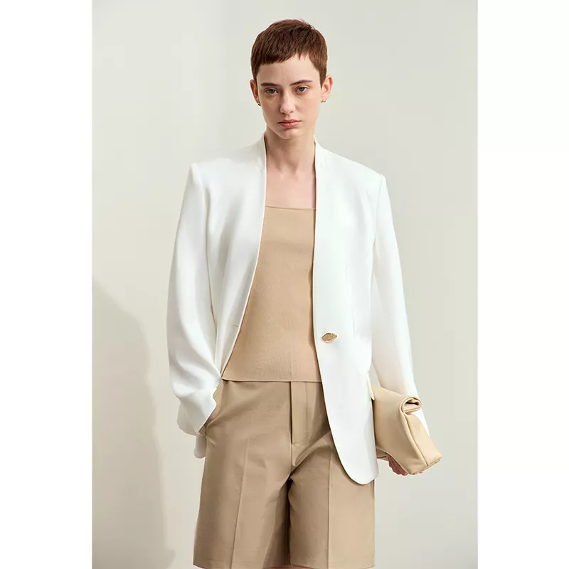 • Closure: Single button closure for a streamlined, classic finish.