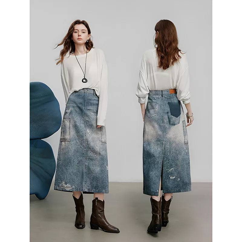 Upgrade your wardrobe with this high-waist vintage denim skirt, a perfect blend of classic style and contemporary elegance. Designed with a structured H-shape silhouette, this ankle-length skirt offers a flattering and comfortable fit, making it an essential piece for effortless everyday fashion. The premium cotton denim fabric provides durability and breathability, ensuring comfort for all-day wear. Whether paired with a tucked-in blouse or a casual tee, this skirt is a must-have for a chic and versatile look.
