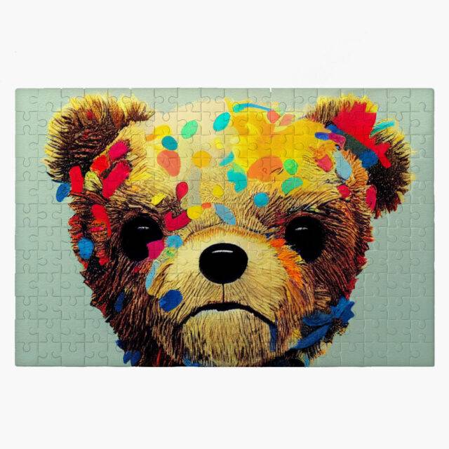 • Interactive wooden puzzle with colorful clock and animal figures