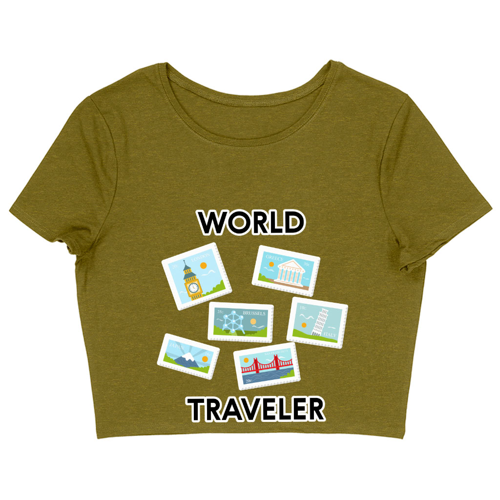 World Traveler Women’s Cropped T-Shirt – Unique Crop Top – Art Cropped Tee