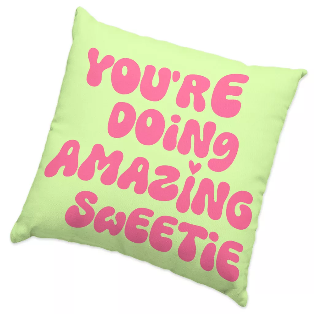You’re Doing Amazing Sweetie Pillowcase – Retro Super Soft and Cozy Pillow Case – Preppy Aesthetic Decorative Square Throw Pillow Covers